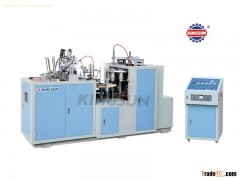 JBZ-S12 double-side PE coated paper cup forming machine is a multi-station full-automatic machine for producing double-sided PE coated drink cups, ice cream cups or conical vessels of other food containers through continuous process of paper feed, ultrasonic medium welding, tube forming, cup rabbet lubrication, oil injection, bottom flushing, duplex bottom heating, bottom knurling, upper mouth hemming and finished product stacking. Because of ultrasonic seal technology, the product is suitable for double-sided PE coated paper and full printed drink cups, ice cream cups and other conical vessels.
